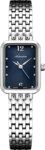 Женские наручные часы. Прямоугольный стальной корпус. Гильошированный циферблат выполнен по технологии Sunray (солнечные лучи). Метки в виде точек и арабских цифр 6 и 12. Стрелки в стиле Alpha. Рифленая заводная головка. Удобный стальной браслет.