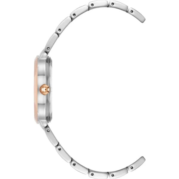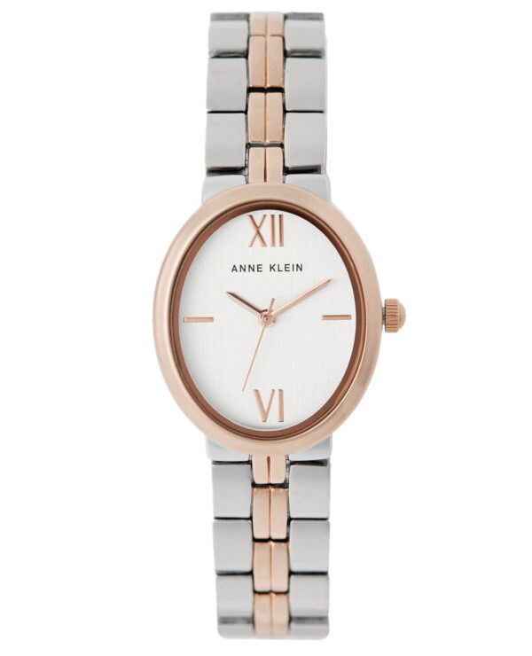 Женские кварцевые часы Anne Klein 5021SVRT представляют собой элегантный аксессуар с овальным корпусом 26 мм из латуни с PVD-покрытием в серебристом оттенке. Модель оснащена минималистичным серебристым циферблатом с римскими цифрами и позолоченными стрелками, кварцевым механизмом японского производства с точностью хода ±20 секунд в месяц. Защитное минеральное стекло устойчиво к царапинам, а водонепроницаемость 30 метров (3 атм) защищает от брызг и дождя. Металлический браслет из нержавеющей стали с PVD-покрытием выполнен в двухцветном дизайне, сочетающем серебристый и розово-золотистый оттенки. Идеальный выбор для женщин, ценящих сочетание классической элегантности и современного дизайна в повседневных аксессуарах.