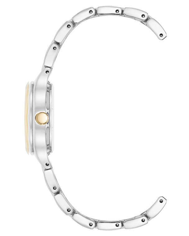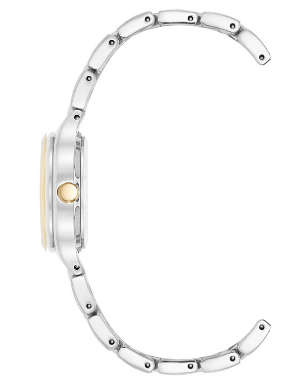 Корпус часов выполнен из высококачественной стали, безель с PVD-покрытием, что обеспечивает их долговечность и стойкость к механическим повреждениям. Стальной браслет, также покрытый PVD-покрытием, закреплен на ювелирной застежке, придавая часам дополнительную элегантность и надежность фиксации на запястье.