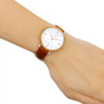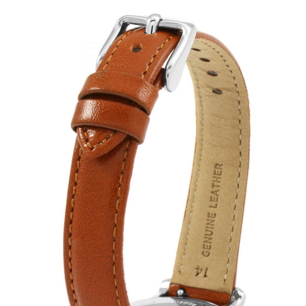 Кварцевый механизм. Центральная секундная стрелка. Апертура даты в позиции 6 часов. Защищает циферблат минеральное стекло. Корпус выполнен из нержавеющей стали с покрытием цвета золота. Кожаный ремень с застежкой пряжкой. Диаметр корпуса 36 мм, толщина 8 мм.
