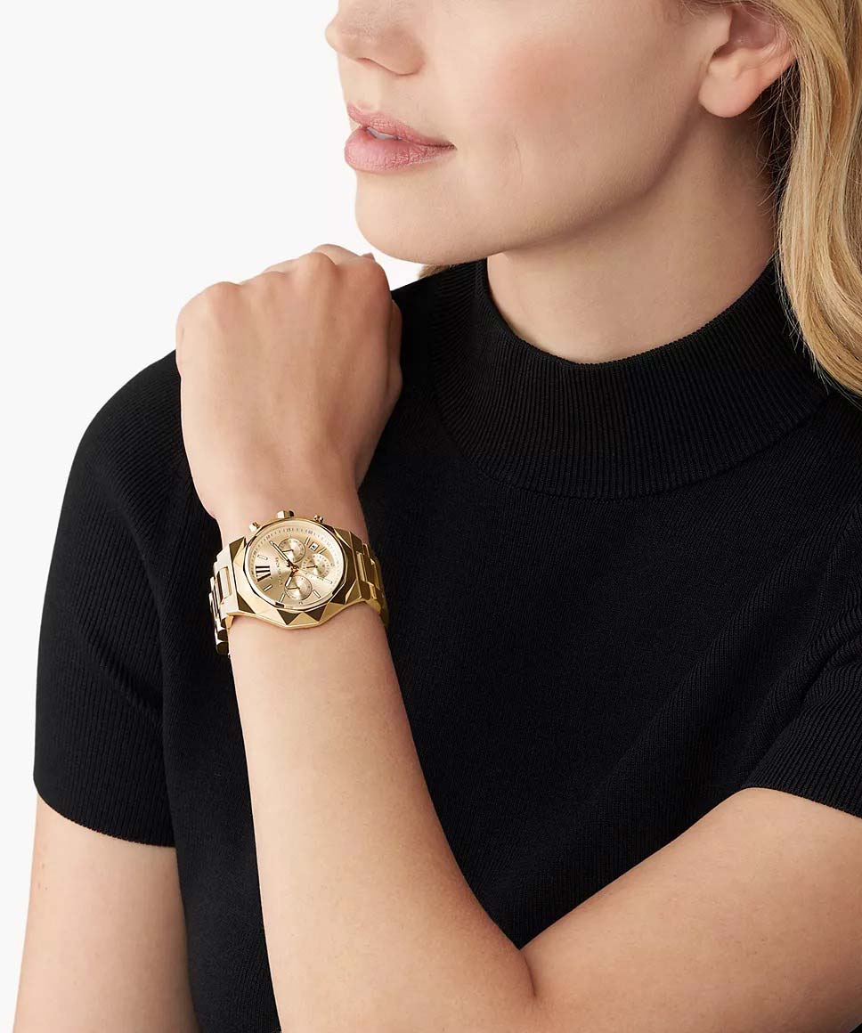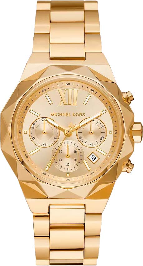 Функциональный аксессуар для ярких успешных женщин, жизнь которых постоянно двигается в активном ритме большого города. Женские часы-хронограф с секундомером. Стальной корпус. Метки в виде штрихов и римской цифры XII. Окошко даты находится между 4 и 5 часами. Граненая заводная головка с защитой. Браслет с раскладывающейся застежкой.