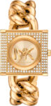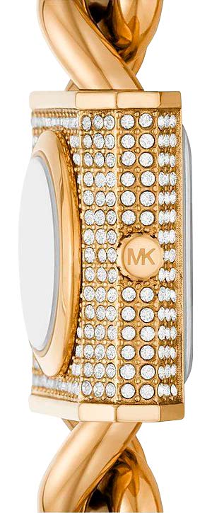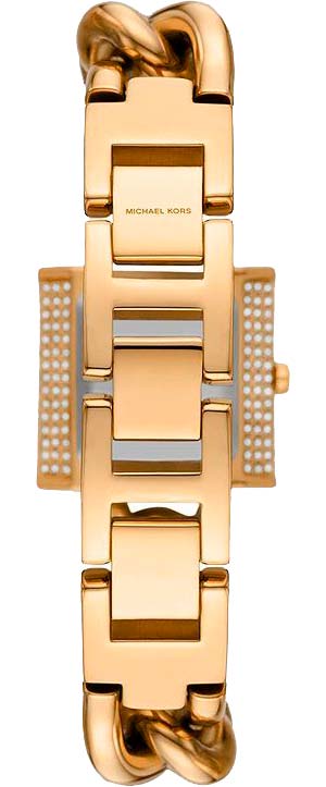 Невероятно яркие и стильные часы станут изюминкой любого женского образа. Женские кварцевые часы MK Chain Lock. Квадратный стальной корпус украшен кристаллами. Циферблат без меток выполнен по технологии Sunray (солнечные лучи) и защищен минеральным стеклом. Рифленая заводная головка. Стальной браслет в виде цепи.