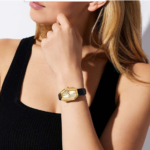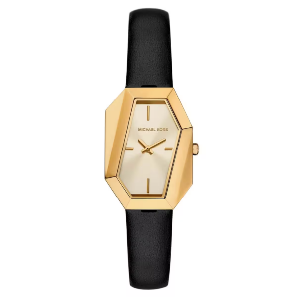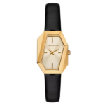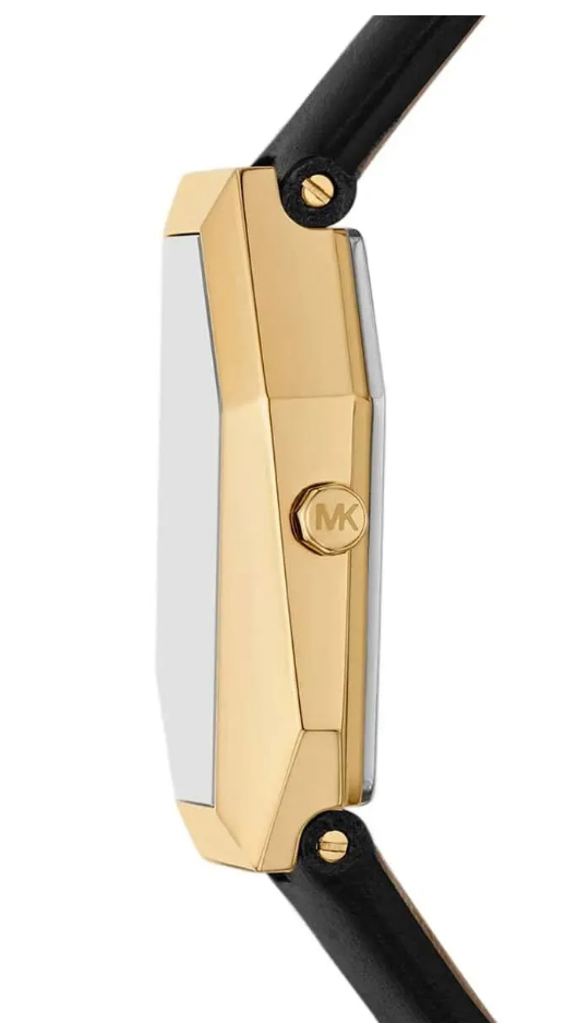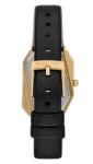 Современные и эффектные часы с асимметричным корпусом напоминают ювелирное украшение. Корпус золотистого цвета и черный кожаный ремешок сочетают в себе чистые линии и остроту, что делает эти часы универсальным аксессуаром для повседневного ношения.