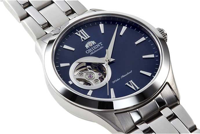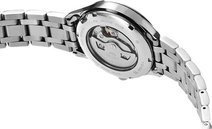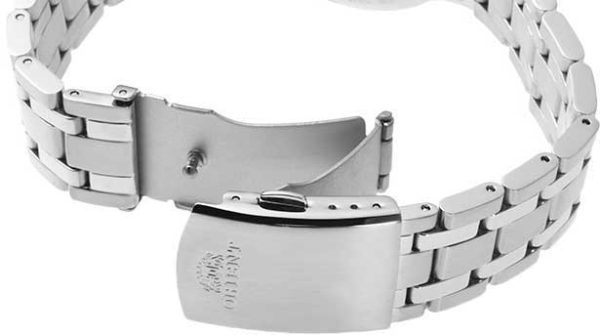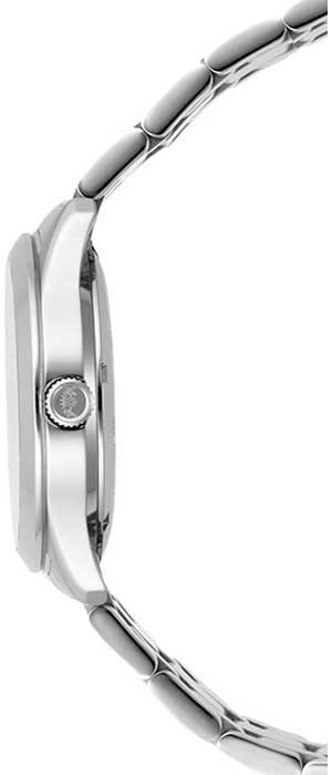 Циферблат с метками в виде штрихов и двух римских цифр. Завинчивающаяся прозрачная задняя крышка. Браслет с раскладывающейся застежкой.